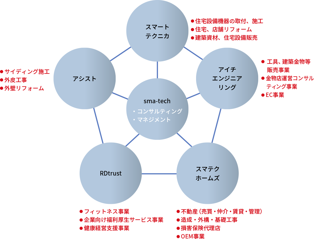sma-tech グループは、無限に行うHappiness Loopでお客様に豊かな住環境を提供することを企業理念として共有します。